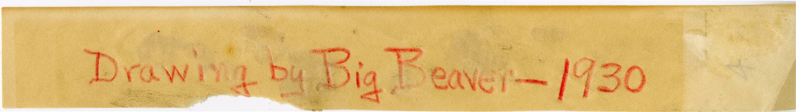 LIBI_00012_07921; A black-and-white photograph of Big Beaver, sitting in front of a tent and holding up two pieces of his art work. Produced by Dr. Thomas Marquis, dated circa 1930. Enclosed with print is a single sheet typed explanation of the picture which was typed by Dr. Marquis accompanying the photograph. In good condition. ; print, photographic ; Courtesy of the National Park Service, Little Bighorn Battlefield National Monument, LIBI_00012_07921, Thomas B. Marquis, "Big Beaver Seated in Front of a Tent Holding Two Pieces of His Artwork," circa 1930