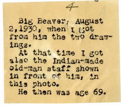 Courtesy of the National Park Service, Little Bighorn Battlefield National Monument, LIBI_00012_07921, Thomas B Marquis, "Big Beaver Seated in Front of a Tent Holding Two Pieces of His Artwork," circa 1930