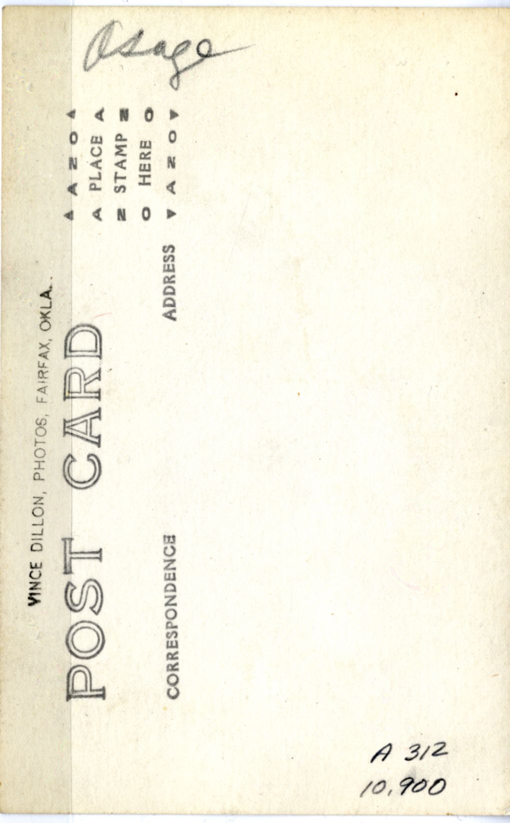 LIBI_00312_10900; A photo postcard. This image depicts Lone Bear, an Osage. He is wearing a feathered headdress and fur vest. He holds a shield and horn club in his left hand and a feathered staff in his right. White lettering on the bottom of the image reads: “Lone Bear 101 Copyright 1912 Vince Dillon”. On the verso, a stamp in black ink along the top reads: “Vince Dillon, Photos, Fairfax, OKLA” A handwritten note along the side reads: “Osage”. This image was produced by Vince Dillon in 1912. ; photo postcard;Courtesy of the National Park Service, Little Bighorn Battlefield National Monument, LIBI_00312_10900, Vince Dillon, "Lone Bear, Osage, in a Fur Vest," 1912.