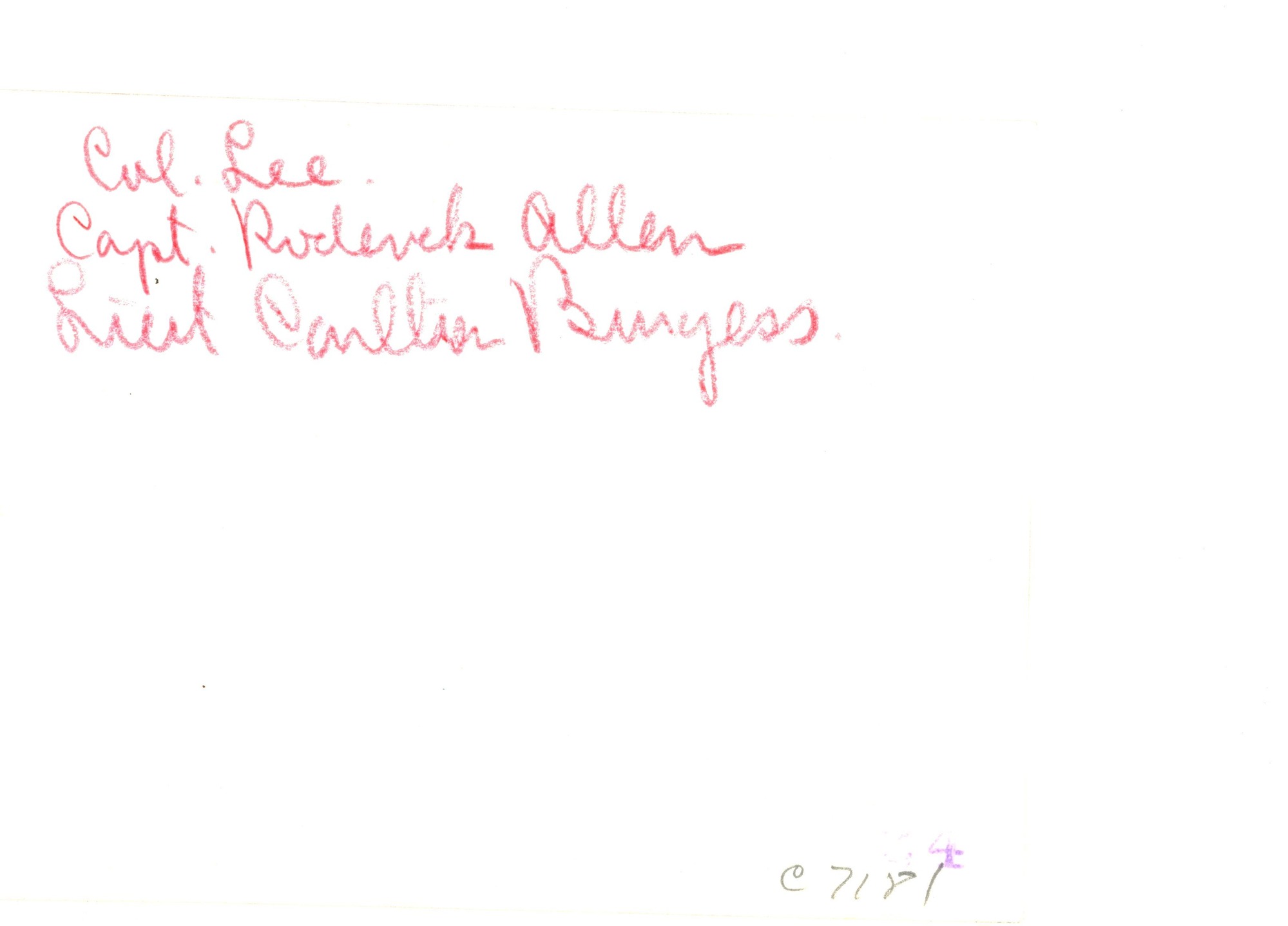LIBI_00011_07181; A black-and-white photograph of Colonel Fitzhugh Lee, commander of 7th cavalry and several Indians and soldiers; handwritten pencil notation identifies Col. Lee, Captain Roderick Allen, and Lt. Carlton Burgess; by unknown photographer, circa 1924.; PRINT, PHOTOGRAPHIC; Courtesy of the National Park Service, Little Bighorn Battlefield National Monument, LIBI_00011_07181, Unknown Photographer, "Colonel Fitzhugh Lee, Captain Roderick Allen, Lieutenant Carlton Burgess, and Unidentified Indians," circa 1924