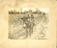 Courtesy of the National Park Service, Little Bighorn Battlefield National Monument, LIBI_00019_00238, Unknown Photographer, "Man on a Mule in a Cornfield," circa 1865 .