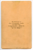 Back of a cabinet card. Front shows an image in an oval. Henry Wadsworth Longfellow three-quarter view to his right. Jacket has silk trim. Inscription: Photographer's imprint includes "Warren's / New Photographic Studio, / 145 Tremont Street . . . Boston, Mass. / Under the personal superintendance of Mr. S. B. Heald." Notes: C1870-C1872. Warren and Heald probably at 145 Tremont Street only a short time before moving (Steele and Polito, Directory of Massachusetts Photographers). Suit resembles those worn by Henry Wadsworth Longfellow in late 1860s.
