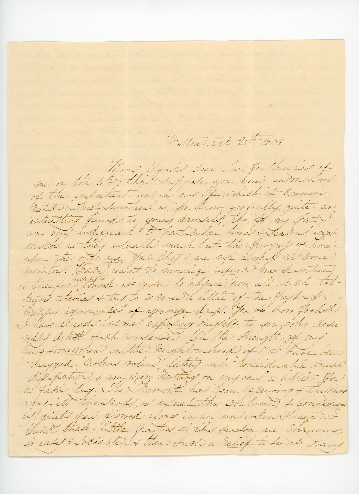 Boston. Oct 20th 1834. – Many thanks, dear Sue, for thinking of me on the 6th, tho’, I sppose,