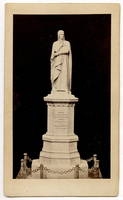 Marble or stone statue of Dante standing with his right hand to his face and his left to his waist. The background is black. Inscription: Inscription written in pencil in cursive verso possibly by Rev. SL records the statue's inscription: "A Dante . . ." "Piazza dei Signore" added. Henry Wadsworth Longfellow Dana added in pencil "Dante's statue at Verona." Notes: C1865-C1870 because of general format and date of statue (1865). Originally filed in Dante Material.