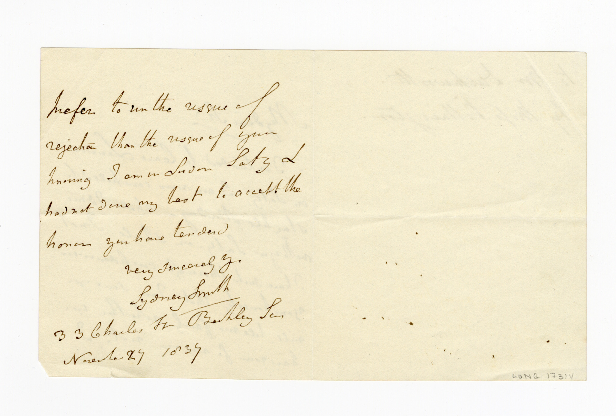 Sydney Smith to Mr. Duckworth, 27 November 1837