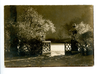 Black and white photograph of garden and house.