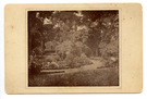 Longfellow House Garden beds and north ell, taken from north side of garden. C1890. Inscribed in ink, in cursive, upper right verso, "Garden./Craigie House." Inscribed in pencil, in cursive, upper right verso by HWLD, "Before 1904." Inscribed in pencil, in cursive, lower right verso by Henry Wadsworth Longfellow Dana, "Shows Byfield Pediment."