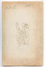 Back of a cabinet card. Front shows an image in an oval. Henry Wadsworth Longfellow almost full profile to left (his right). Striped texture of suit visible. Inscription: "H.W.L. / 1878" written in pencil verso probably by EED. Photographer stamp includes "Warren's / Portraits / 465 Washington St. / Boston." in gold ink verso. "Warren" stamp in gold ink also below image. Notes: 1878. Appearance, outfit, and photographer dates at this address compatible with 1878 date given in inscription. Associated Materials: 3007-1-2-1-84 identical image.