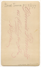 Back of a carte-de-visite. Front shows a half-length portrait. Man with white beard and graying hair (no mustache) is three-quarter view to his left. He wears a white waistcoat and jacket with three buttonholes in lapels. Inscription: "John S.C. Abbott / AE. 70" written in cursive in ink below image. To left is "Warren" printed in red. "Died June 17. 1877" written in pencil by Henry Wadsworth Longfellow verso. "Warren's Portraits / 465 Washington St., / Boston." printed in cursive in red ink verso. Notes: C1875. In envelope labeled "Longfellow's Photographs of His Classmates Bowdoin College Class of 1825" by Henry Wadsworth Longfellow Dana in block print (envelope holds paper scrap possible from envelope with "Classmates" in Henry Wadsworth Longfellow handwriting, "Henry W. Longfellow Guardia[n] / Cambridge"). Others in group date before 1878. It is possible some were collected at the 50th class reunion.