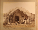 Maori people in front of small reed house. Inscription reads "Maori Chief and Ori Wharepuri or House New Zealand." From Burton Brothers album collected by Charles Appleton Longfellow on his trip to New Zealand in 1891. Archives Number: 1008-2-1-2-9-43