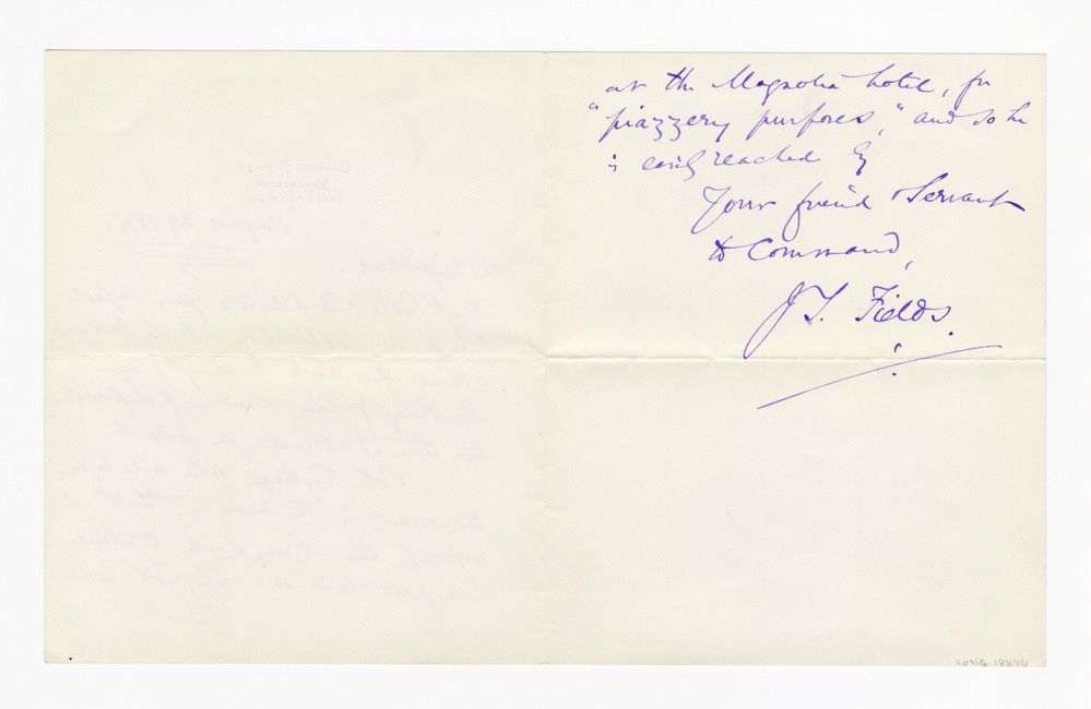 Manuscript letter in Henry Wadsworth Longfellow Dana Papers, Series IX. Collected Materials, C. Miscellaneous Famous People. (1002/9.3-056#008)