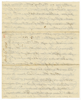 Philada 21st. April1798 My dear Lucia, I am afraid is not particularly noticed so often as she has a right to expect. When the frequency of her Communications are taken into Consideration. Her Diaries & Letters are always interesting to her papa as well as the rest of the Family – that is, that part of it, who are honour’d ^favoured with the penisal[sic] – it is only the best part of it tho, that has the honour, I mean the young Ladies – tho I am not sure but Mathew has – taken a peep! but that’s no matter, you know, as long as it is done privately & with-out our knowledge – This same Math-ew Wallace, If I remember right, has got a dimple in each Cheek, but if he han’t[sic] he (p. 2) is said to be very handsome, & he is a student of the Divinity & a Tutor in the College of this City – Be that as it may, Miss Ann has certainly got a Dimple begun in her left Cheep[sic] & it makes a very rapid progress, since it has been so confidently asserted From Maine that “Dimples are an infallable[sic] good sign.” – tho I don’t know what odds there need be on that account, as all our Family are handsome enough without, & do not stand in need of Dimples – You say, my dear, that MSonday[sic] 1st April was such bad weather that you (the Girls) could not sing & consequently did not play – I am at a loss my dear for your meaning, as much as when the Man said He could not set the Psalm because he had no shoes – tho it was plain enough, when it was understood that (p. 3) For want of Shoes, He had taken a Cold, which prevented him singing – was that the case with You? – I long to hear your mus-ick[sic] join’d with the little Boys, I suppose they can sing, all weathers – There seems to be a large proportion of Knitting amongst your Family Ex-ercises. Is it in imitation of my Lady President? For she frequently knitts[sic] when she has not Company, that is when she has not a public company. I fear I shall slacken your zeal of ^for Knitting when I tell you that I have purchased, by the Help of Mrs Wallace, two half dozn of my nice Whit Cotton womens Hose – O no! Womens Cotton Hose – they are as fine as a hair & as white as snow – but this need not hinder the Knitting for the little Boys, for they will not want stockens[sic] or Mittens the less because your Mama & her Daughters have divided a dozn pr Stockens ^amongst themselves (p. 4) Your old Visitor Major Thrasher keeps up his attention I see – the old man is really a pitiable Spectacle, however I believe it is a good ^thing to pay him some little atten-tion, (as you do,) It is a comfort to the Af-flicted ^old man, which costs ^you not much; but a total neglect would be a real evil to him & would cost much more ^to your Feelings. Besides the old man has some wit, “as well as all manners.” Was Miss Hanford, the invalid, a mate of yours? & how does She do? – You ask “If you shall sit with the singing Choir” - I have no objection, my Dear if all things are agreable to you – but ^what says your Mama? She is the best judge as to the propriety of your sitting with them. If a falling off would be likely to be any Dis-couragement, I think it will be best to join them there, by all means – tho, but for a little time; till they get underway – I have now just run thro your Diary & touch’d upon here (p. 5) & there a line; which has taken up the usual pages of a Letter, tho I think it generally most entertain-ing. (when a special answer is not as ne-cessary) to give Anecdotes & observations of things about us, when we are dis-tant from our Correspondents, rather than to spend many Observations on those things communicated to us – The latter leads us abroad, in imagination, in quest of Novelty; & the former leaves us at home, where we have the same story over & over again – Apropos – It is Saturday in the afternoon, there is no Congress, nor School, & the Weeks Work is over, consequently. I have the honour & the pleasure of seeing sitting in my Chamber here & there whilst I am writing this scroll All the younger part of the Family. Miss Edith (p. 6) & Rebecca are each sitting by the table with a Magazine in their hands – perusing them very demurely & little thinking that I am engaged in making any Observations on their Acct. Miss Ann sitting on the foot of the bed sewing her white gloves, such as are usual when a young Lady becomes a bride. Polly standing by the window reading, David looking over Miss Edith’s shoulder, tho I have often ^before told him not to do it. Robert & Marga-ret are rather noisy about the room playing with a little black turtle about as big as a dollar – the little young thing puts out his head & runs & creeps to their great diversion – (Children don’t make seashon ^quite so much – Noise, if you please) Add to this a brisk April Shower abroad with thunder & Lightening mix’d with hail, (p. 7) pattering on the Roof of the Kitchen before my window & you have a view of your papas as He sits scribling[sic], with his new Coclico Strip’d Silk Gown, put on this Afternoon for the first time, because the weather is warm – Miss Edith made my Gown & it suits nicely – Ay, & she has got her trade too, as nicely; for in making up the Piece, only two Gowns, one for Mathew & the other for myself, She has, by dint of the Art made & saved Cabbage enough to make herself a short gown or what ever it may be called – Who could have thot there had been so much Art in so plain a piece of Work!!! - Ladies, what do you find in the magazines -? Miss Duffield is married – nothing else? I was only looking of ^for the Marriages! So you see my dear Lucia how it is Adieu – PW.