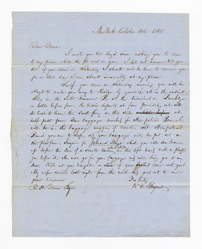 William Cullen Bryant to Richard Henry Dana Sr., 11 October 1848