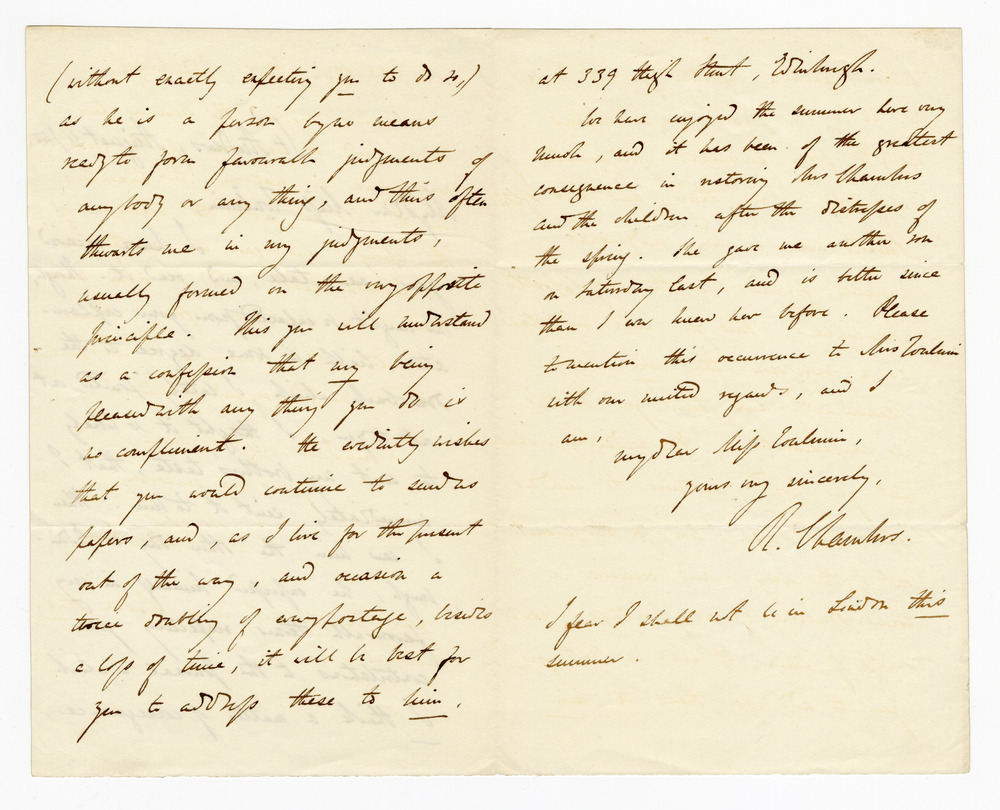 Robert Chambers to Camilla Dufour Toulmin, 4 August 1847