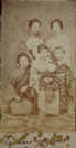 Three Japanese women and two children group portrait, circa 1872