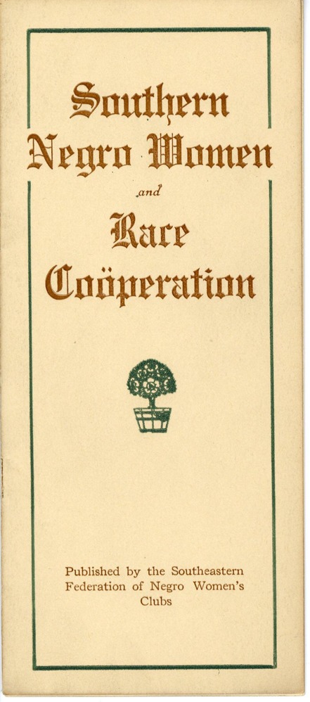 Southeastern Federation of Negro Women's Clubs - 'Southern Negro Women and Race Cooperation'