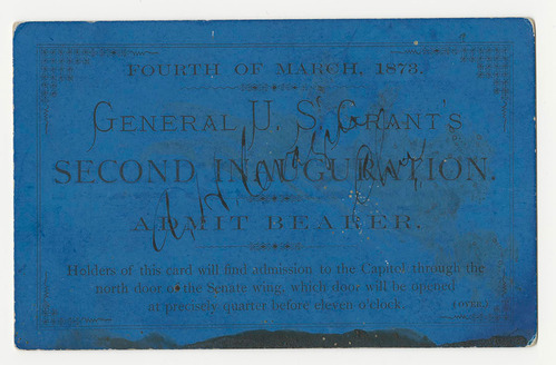 Grant's first inauguration was the first time that admission cards were required for an inauguration at the U.S. Capitol. Tickets were also required for his second inauguration.