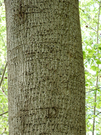 Drillmarks of yellow-bellied sapsucker (a species of woodpecker) in the bark of a tuliptree ; Liriodendron tulipifera; .Photographer: Matt Jones