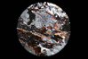 Circular microscopic image of rock structure.
