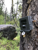 A wildlife camera on a tree.