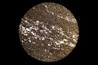 Microscopic image of a thin section of siltstone collected by Peter Misch in Whatcom County, 1952. One of three images. (Peter Misch Geology Collection, North Cascades NPS Complex Museum Collection.)