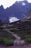 Cascade Pass, Sahale Arm, revegetation monitoring photograph. Text on slide frame reads: "REV/CAS/SAH/b-22, Cascade Pass 1993 Nill map features, Doubtful Lake Junction Vicinity, E.H., 8/96." (North Cascades NPS Complex Museum Collection, NOCA.0013 Revegetation Program Records, Series XI: Photographs, File 001 - Cascade Pass Vicinity Impacts and Revegetation Sites, 1970-2004)