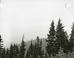 A stand of conifers in the foreground with more trees on low mountain ridges in the distance.