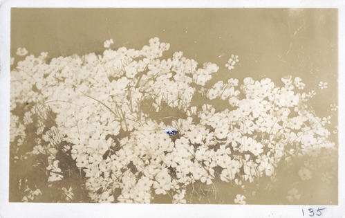 Photo 125 of an album of photographs taken by L.D. Lindsley of Mary Roberts Rinehart and party visiting the North Cascades in 1916. The catalog description reads: "Close-up of flowering alpine phlox, Phlox diffusa." (North Cascades NPS Complex Museum Collection, Assembled Collections, Series II: Stehekin Area Photographs, File 001 - Mary Roberts Rinehart Album.)