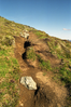A trail with a long bare strip besides it surrounded by grass.