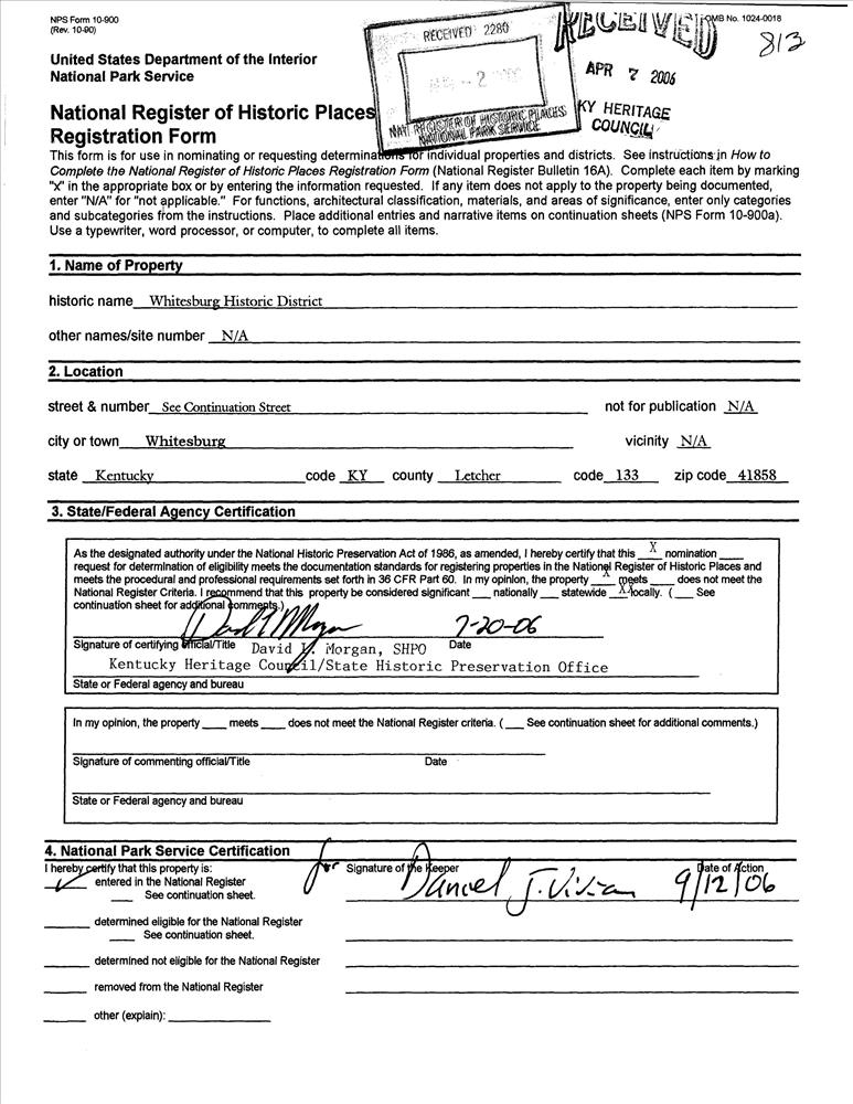 Whitesburg ; Portions of Main Sts., Broadway, Bentley, Webb, and Hayes Aves., Church, Pine, Cowan, Madison Sts, River Rd., Hazard Rd