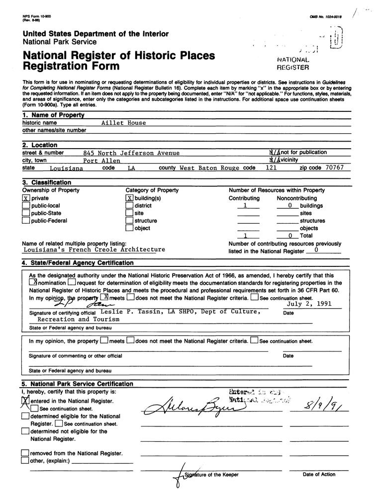 Port Allen ; 845 N. Jefferson Ave.
