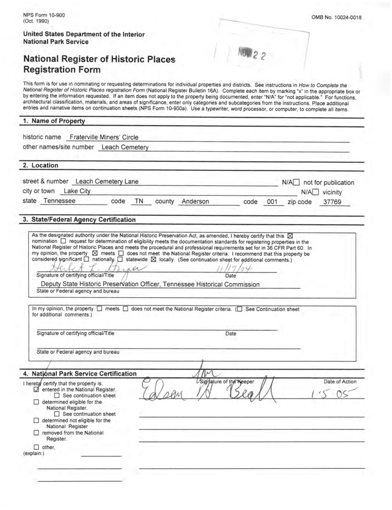 Rocky Top (formerly Lake City) ; Leach Cemetery Ln.