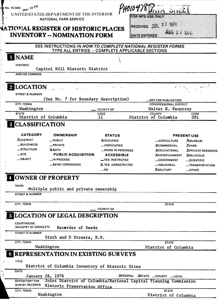 District of Columbia ; Washington ; Roughly bounded by Virginia Ave., SE., S. Capitol St., F St. NE., and 14th Sts. SE & NE.
