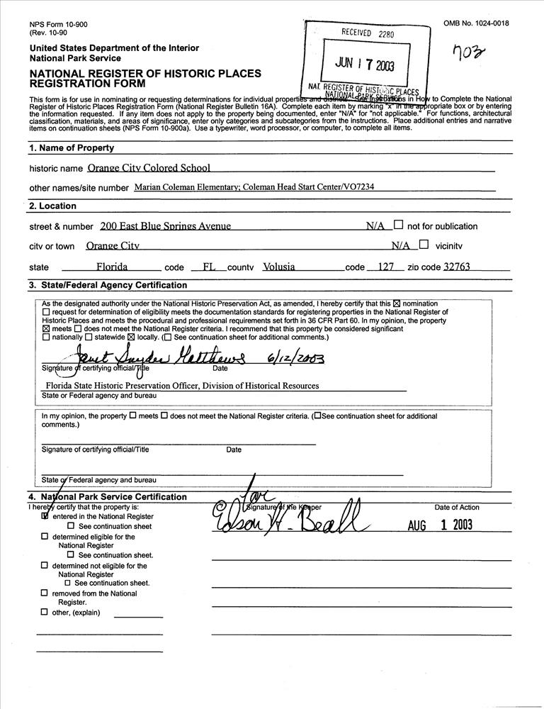 Orange City Colored School