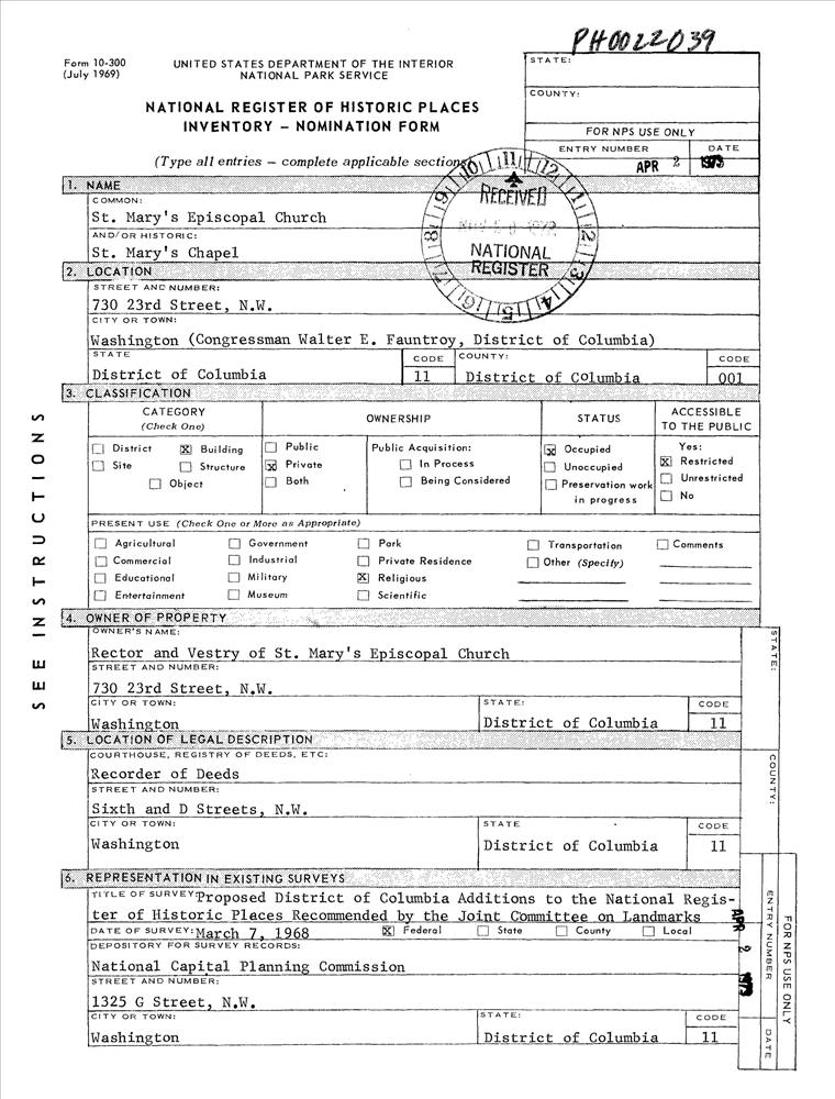 District of Columbia ; Washington ; 730 23rd St., NW.