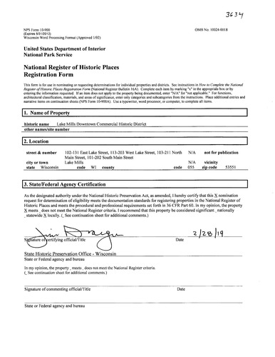 Lake Mills ; 102-131 East Lake, 113-203 West Lake, 103-211 North Main and 101-202 South Main Streets