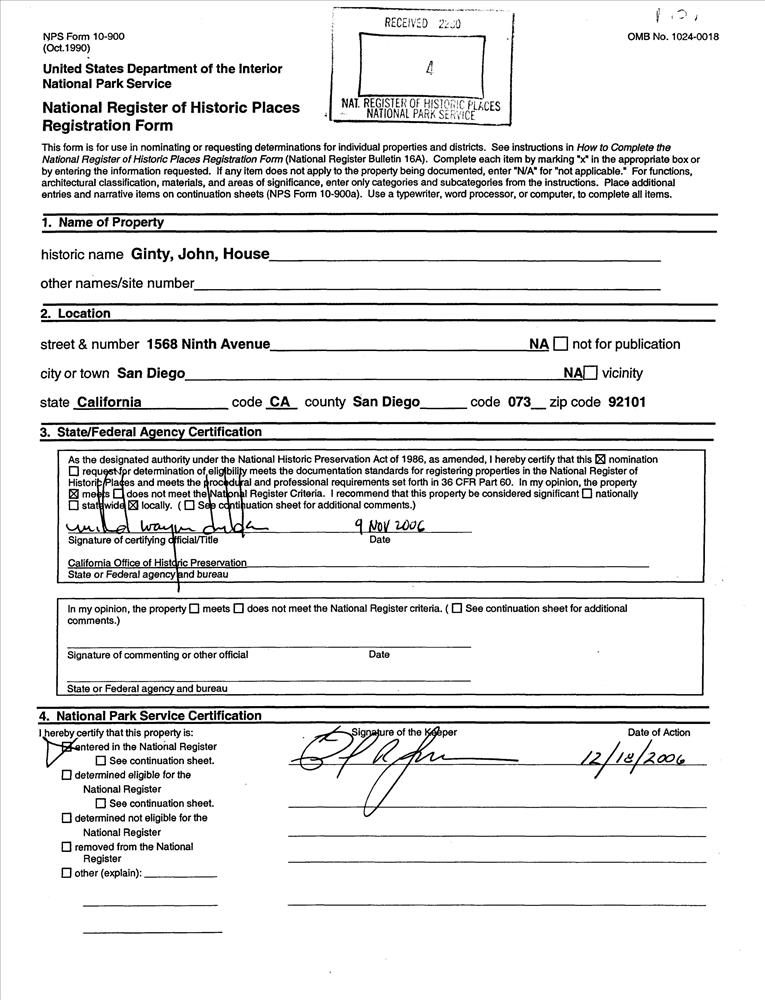 San Diego ; 1568 Ninth Ave.