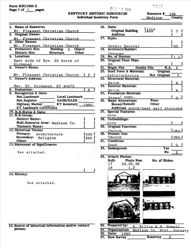Mt. Pleasant Christian Church