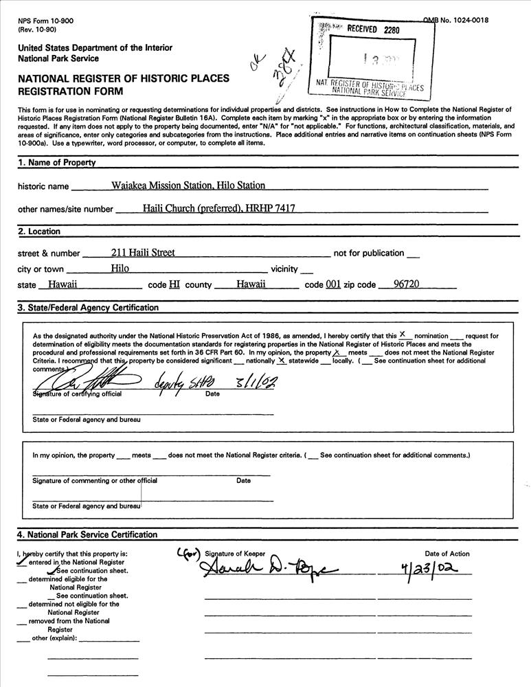 Hilo ; 211 Haili St.
