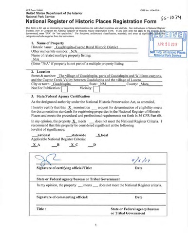 Guadalupita ; Village of Guadalupita, parts of Guadalupita and Williams canyons and the Coyote Creek valley between Guadalupita and Lucero