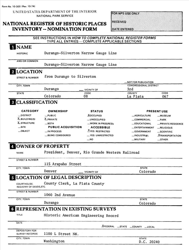 Durango ; Right-of-way between Durango and Silverton