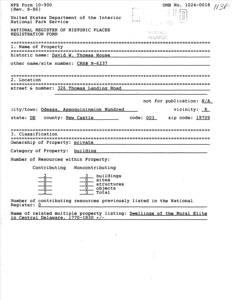 Odessa ; 326 Thomas Landing Rd., Appoquinimink Hundred