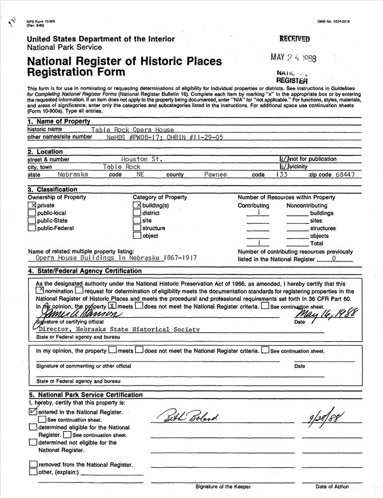 Opera House Buildings in Nebraska 1867-1917 MPS