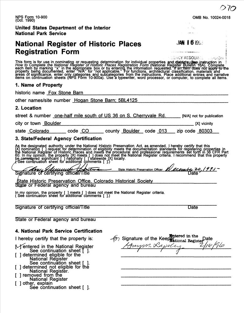 Boulder ; S. Cherryvale Rd., .5 mi. S of US 36