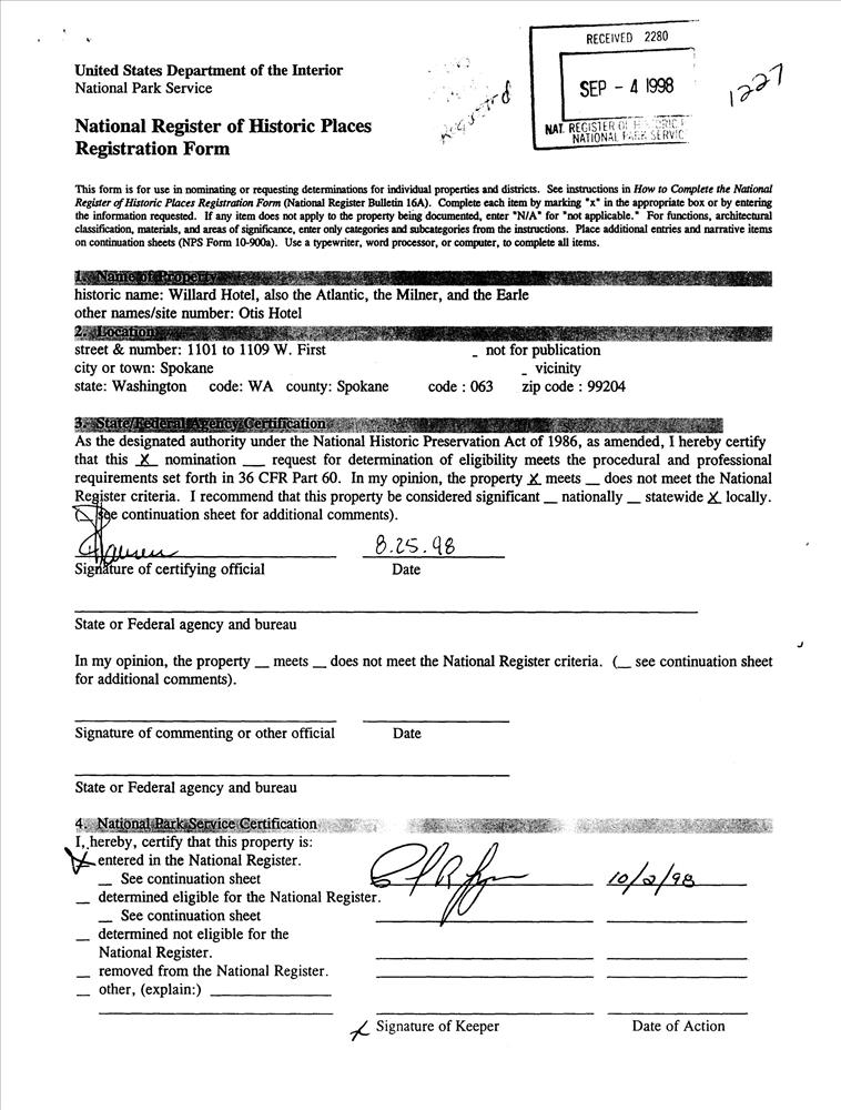 Single Room Occupancy Hotels in Central Business District of Spokane MPS