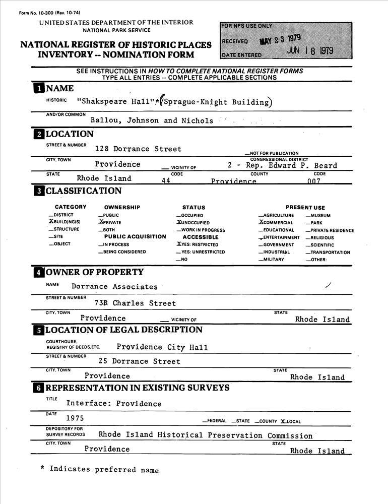 Providence ; 128 Dorrance St.