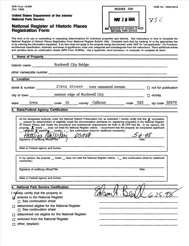 Rockwell City ; 270th St. over unnamed stream