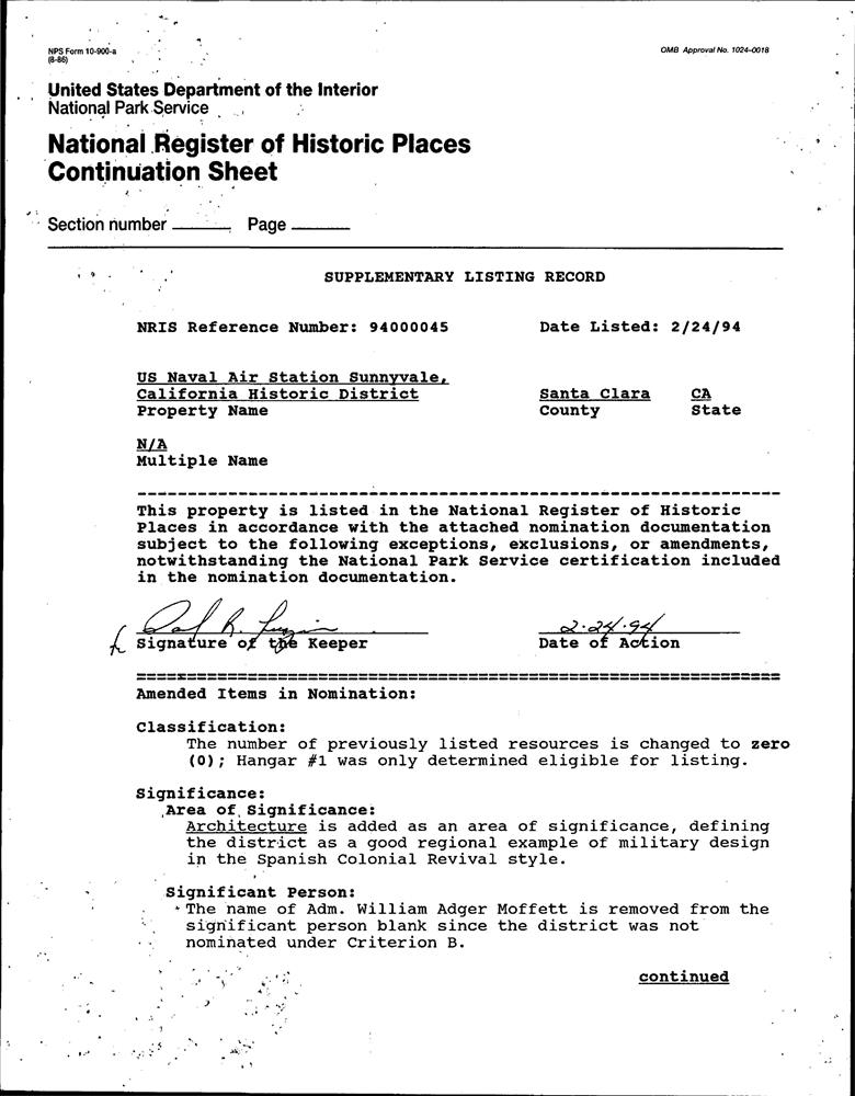US Naval Air Station Sunnyvale, California, Historic District