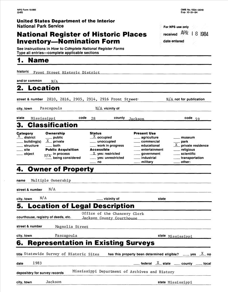 Pascagoula ; 2810, 2816, 2905, 2914, 2916 Front St.