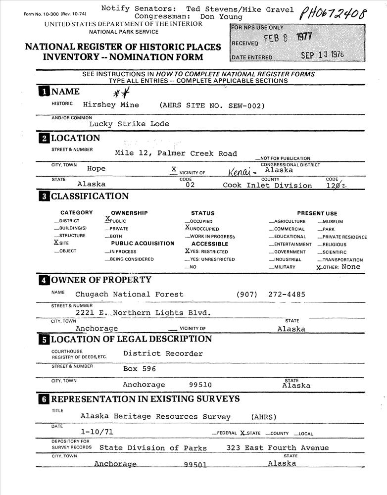Hope ; SE of Hope on Palmer Creek Rd.